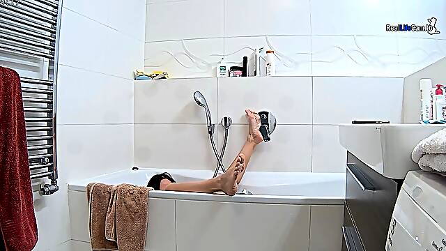 Voyeur, dusch, fötter, tyska